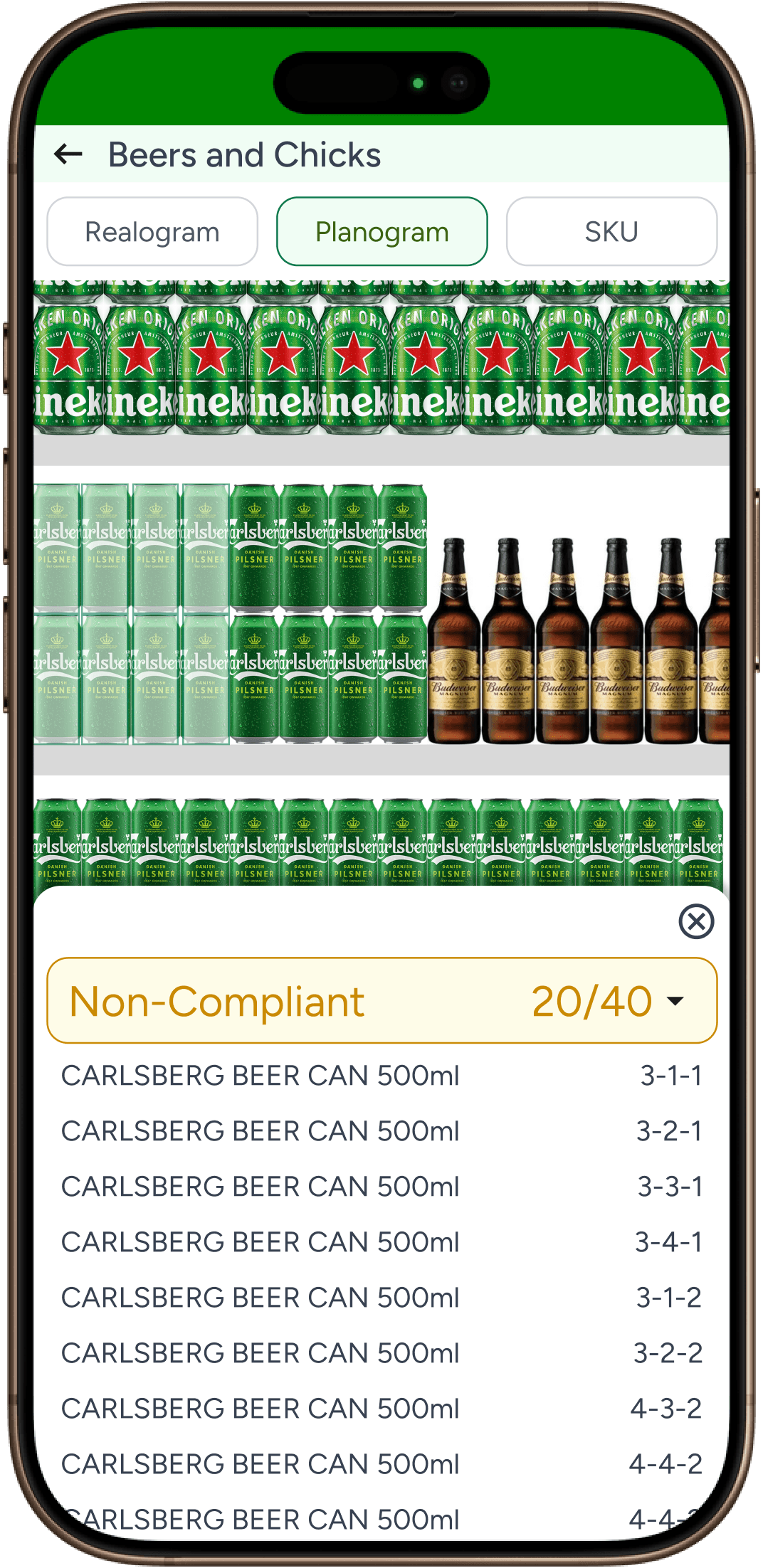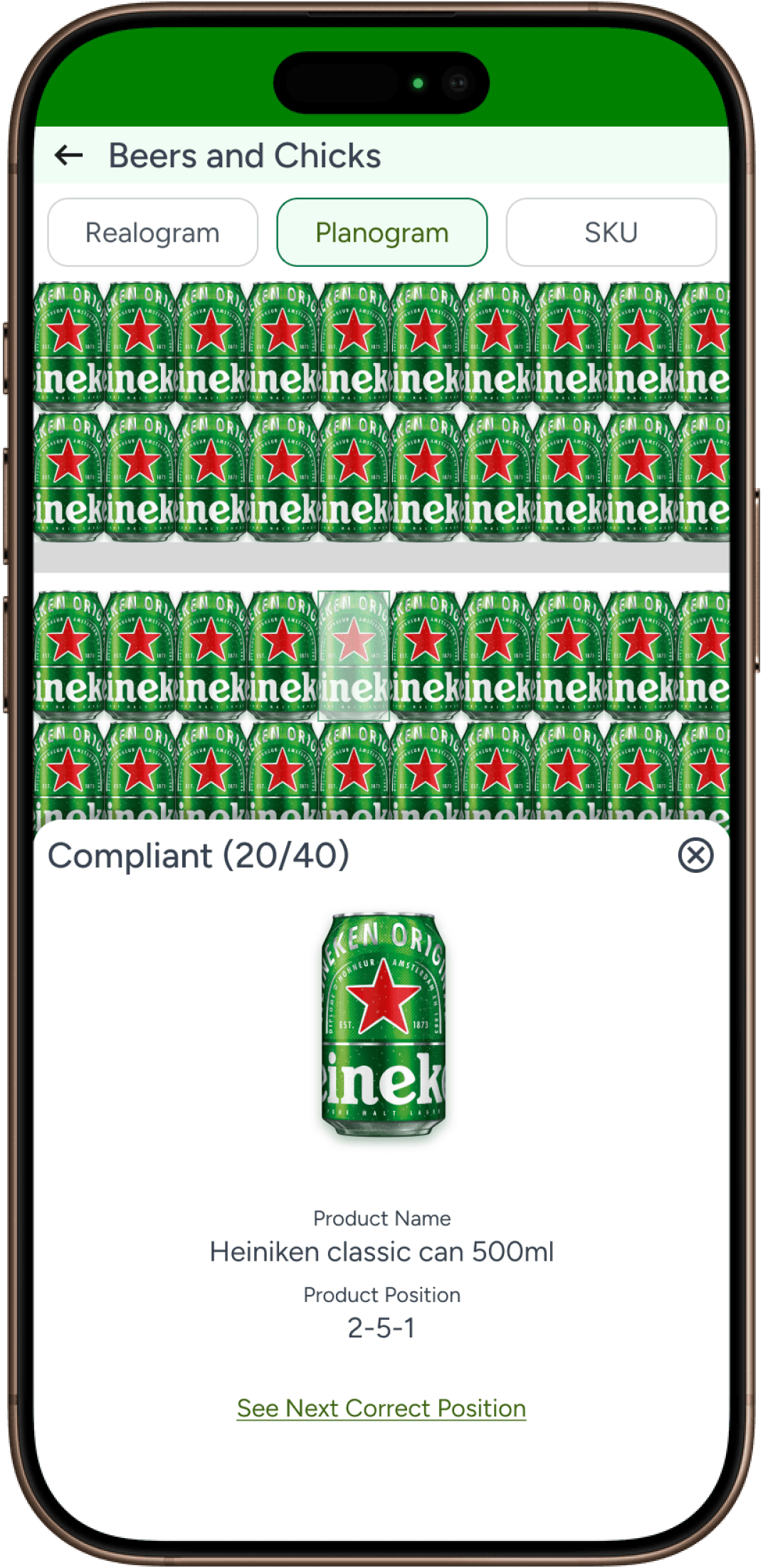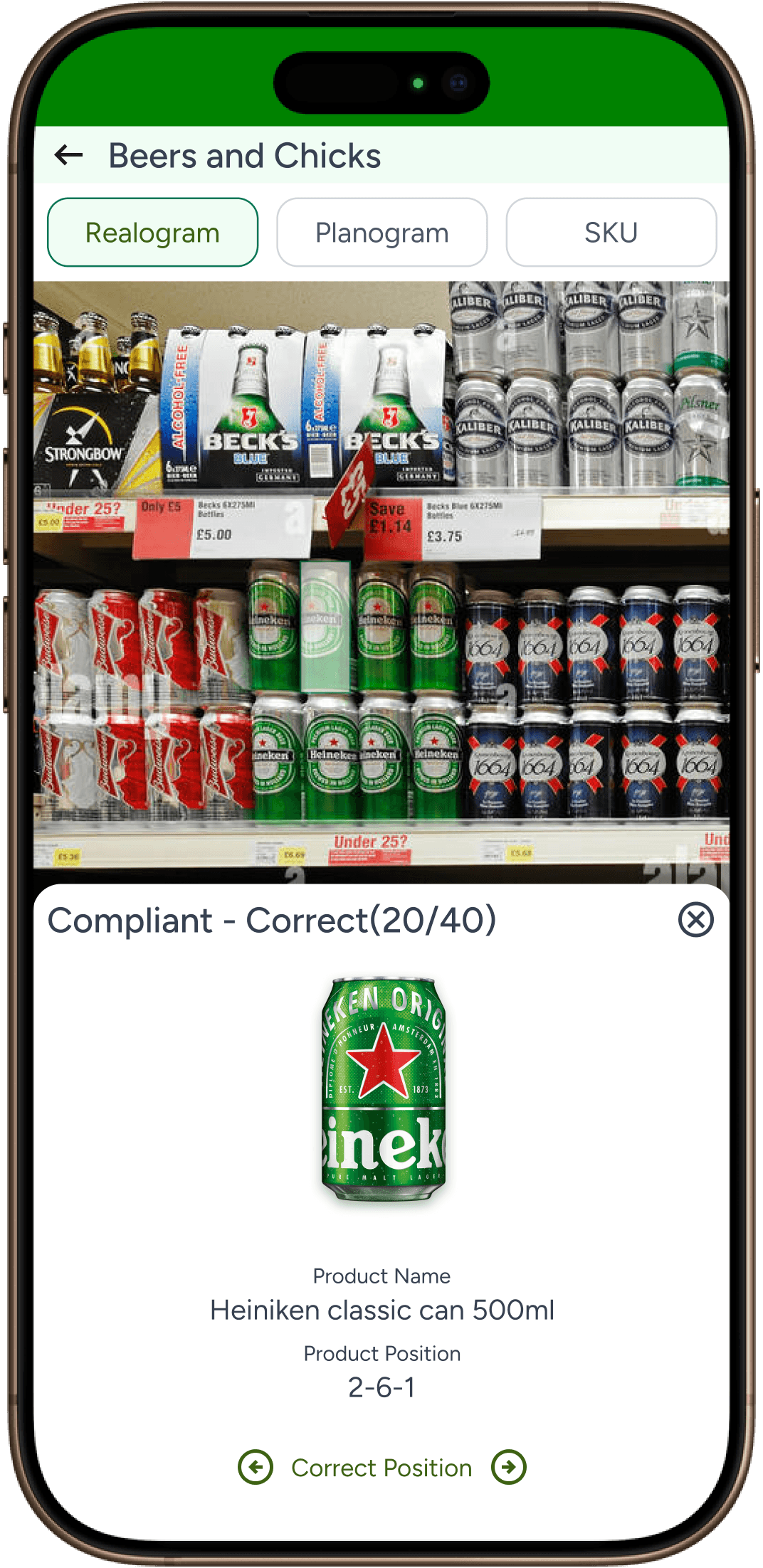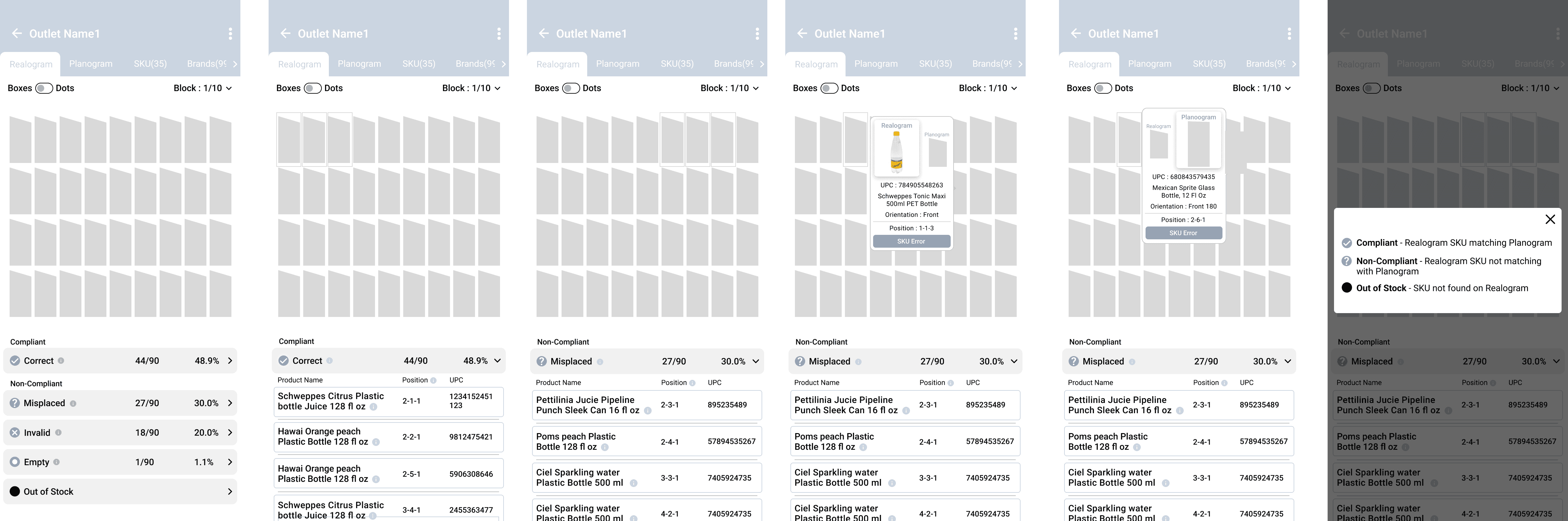 Compliant product SKU position wise view which is similar to Realogram
