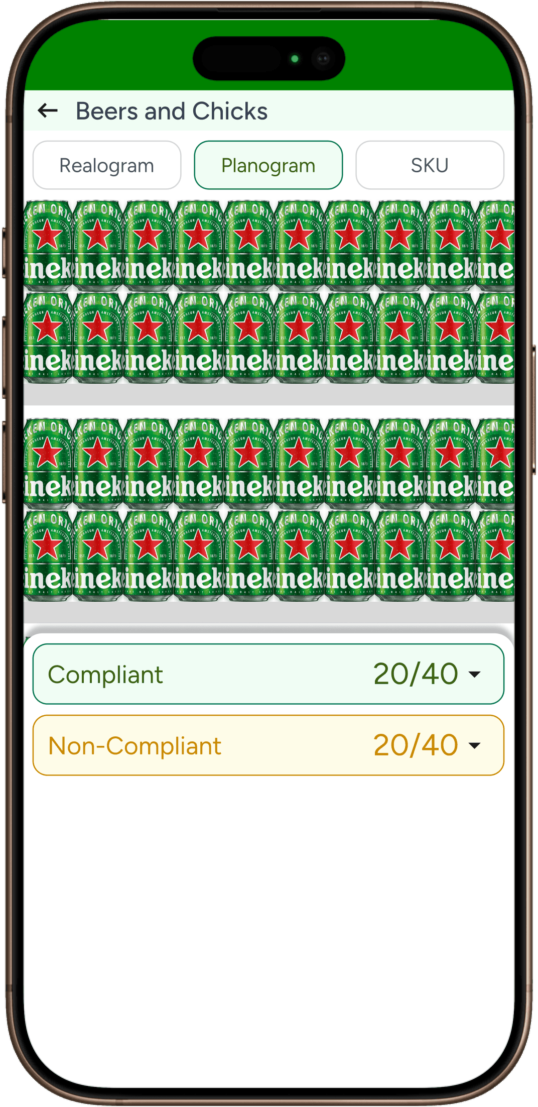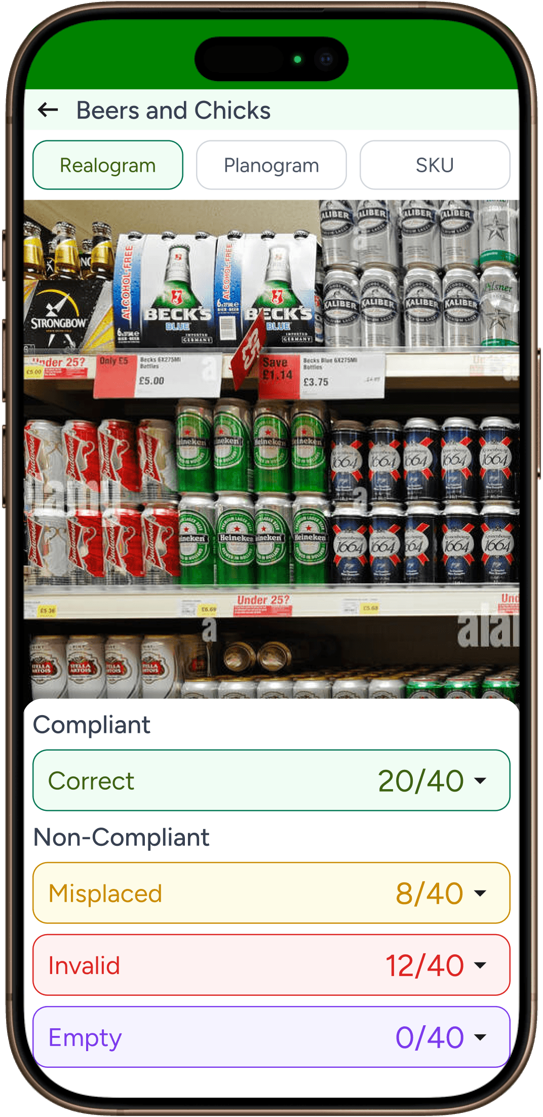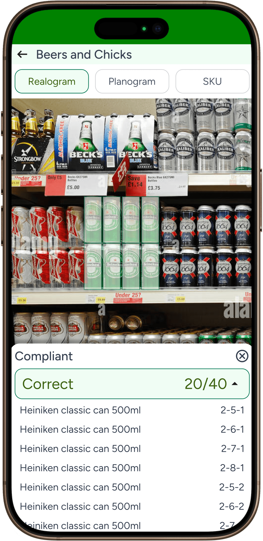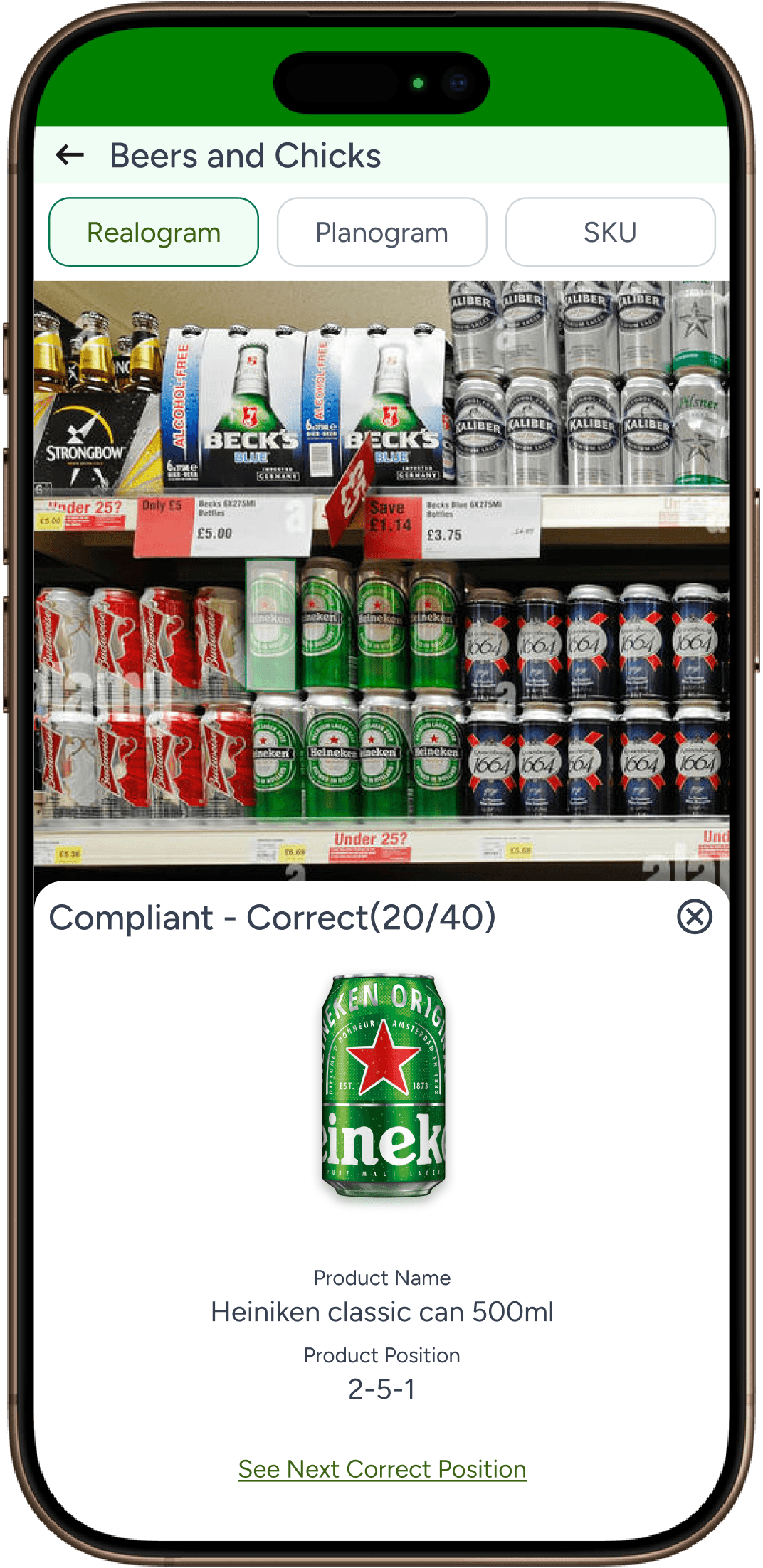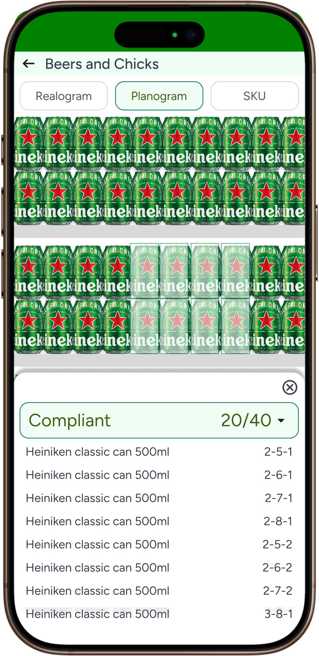 Compliant product SKU position wise view which is similar to Realogram