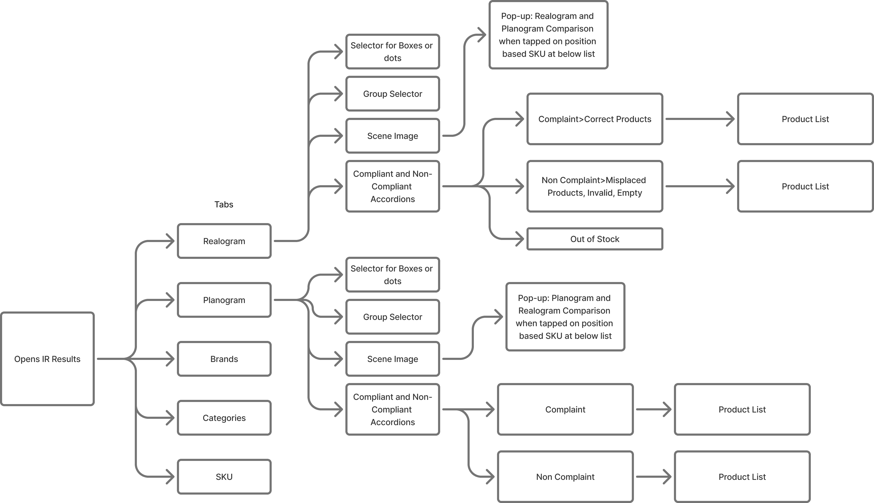 With gathered insights, we have to improve the existing results screens to make the executives to be able to simply compared the results with Planogram. But also it has to align with business goals, so the business teams have requested to provide multiple user journey ideations which could help them signup new clients.