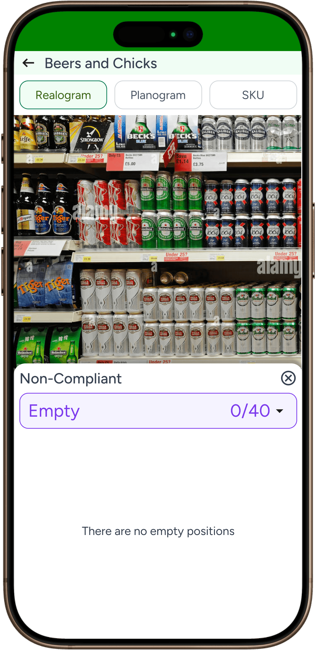 Non-Compliant product SKU position wise view which is similar to Realogram