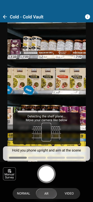 Tasks: Capture a wide shelf SKU using AR Camera vs. normal camera.